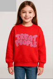 بلوز تک دخترانه با طرح "TREAT PEOPLE" یک لباس فوقالعاده شیک و پیامدار برای دختران شماست. این بلوز به دلیل استفاده از پارچه مرغوب و رنگبندی بسیار شاد و متنوع، انتخابی ایدهآل برای تکمیل استایلهای کژوال و اسپرت در فصول خنک است.