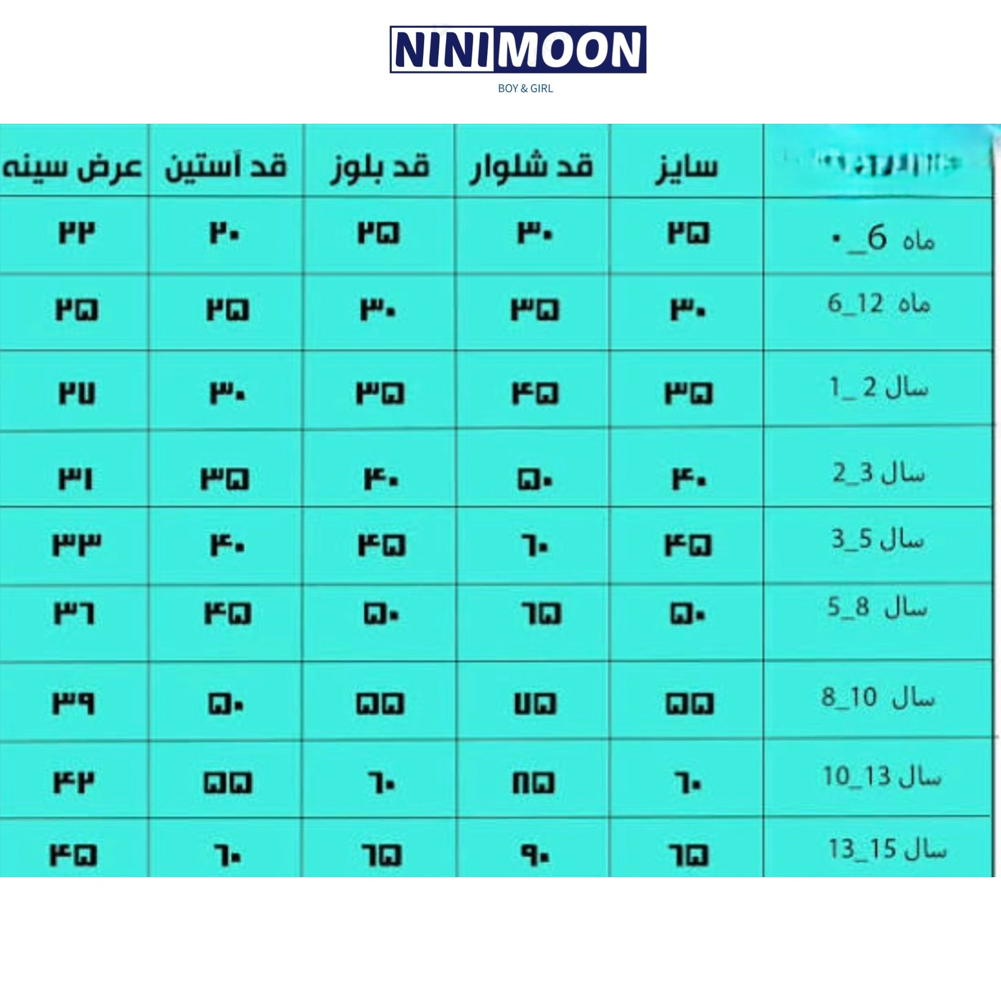 رده سنی | سایز | قد شلوار | قد بلوز | قد آستین | عرض سینه